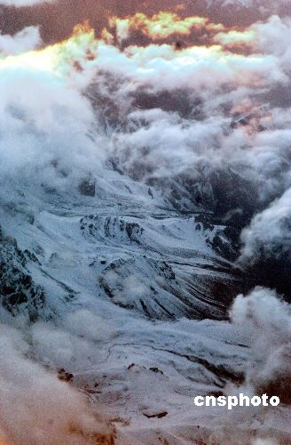 据中国科学院天山冰川观测试验站介绍,根据长期科学观测显示,受气候变化与地球持续升温影响,新疆天山一号冰川消融加快,有观测记录的45年间冰川厚度减薄11米之多,损失总量约为1838万立方米。图为空中俯瞰新疆天山山脉。作者:韩艺冰
