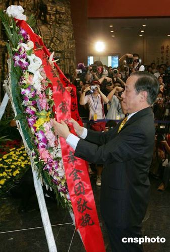 台湾新党主席郁慕明率领的台湾新党“民族之旅”访问团七月十一日在北京卢沟桥参观中国人民抗日战争纪念馆并敬献花圈。作者:毛建军