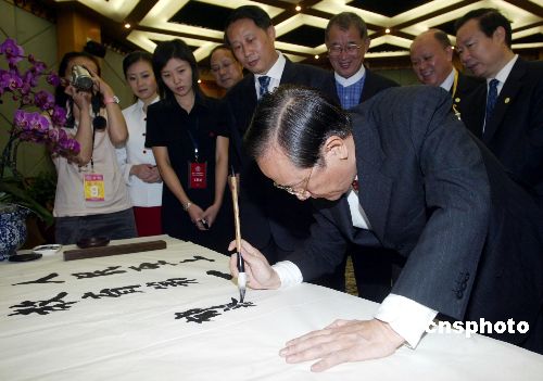 七月十二日,新党大陆访问团在中国人民大学参观访问,新党主席郁慕明向师生们挥手致意。作者:史利