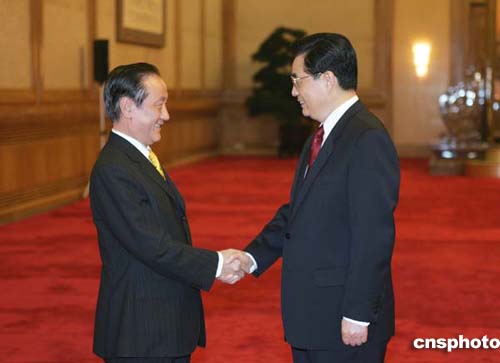 图:胡锦涛会见新党主席郁慕明
