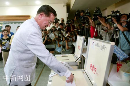 组图:连战参加国民党主席选举投票