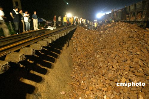 | 受台风“海棠”影响,河南郑州两天连续暴雨。7月22日16点20分左右,陇海铁路596公里处荥阳索河桥西段路基发生塌方,塌方处长约20米,高约15米。事故发生后,郑州铁路局紧急派出1200名作业人员奔赴现场,抓紧时间进行抢修,并从洛阳、三门峡等处抽调30车的片石供抢修用。现场负责人预计7月23日晚零时陇海铁路可恢复双向通车。另据悉,仅郑州火车站就有32列火车延误,近4000名旅客滞留。此次事故是陇海铁路郑州段近几年来发生的最为严重的一次塌方事故。作者:董亮