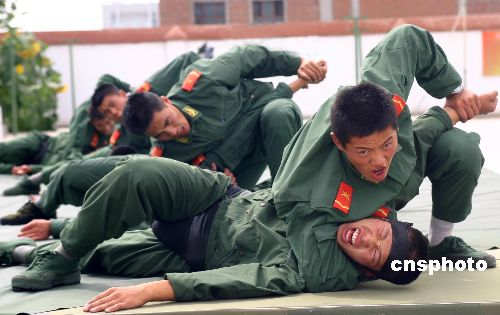 7月下旬,新疆某兵团武警中队开展了以训练擒拿技能为主的军事活动,并组织了实弹射击,不断提高部队训练质量,迎接“八一”建军节的到来。作者:张文成