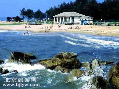 一脉青山,山光积翠;一汪碧水,水色含青。北戴河海滨环境优美,风光秀丽。风景区西面是婀娜俊美的联峰山,山色青翠,植被繁茂。每逢夏秋季节,山上草木葱宠,花团锦簇,各种松柏四季常青。戴河如练,沿山脚婉蜒入海。山中文物古迹众多,奇岩怪洞密布,各种风格的亭台别墅掩映其中,如诗如画。南面是悠缓漫长的海岸线,质细坡缓,沙软潮平,水质良好,盐度适中。沿海开辟的30多个专用和公共海水浴场,为游客瘪戏大海,尽情享受海浴、沙浴、日光浴提供了理想的场所。东面有鸽子窝公园,是观日出、看海潮的最佳境地。每天清晨,游客们便早早地赶到这里,尽情地观赏日出的盛景,领略潮涨潮落的壮观景象。沿海岸线向内,更有秦皇宫、北戴河影视城、怪楼奇园、金山嘴、海洋公园等各种风格、不同特色的旅游景点分布,加上众多街心公园和花园的点缀,山、海、花、木与掩映其中的各式建筑交相辉映,构成了一幅优美、和谐的风景画。北戴河海滨,严然是人间的伊甸园。