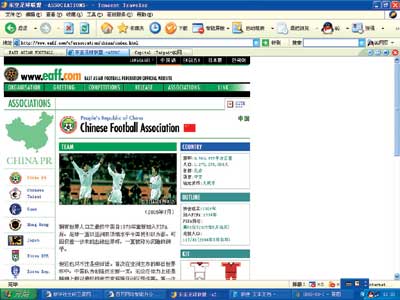 随着中国男足、女足国家队征战东亚四国足球锦标赛,关于东亚足联这样一个机构也开始进入人们关注的视线。但读者刘先生昨天浏览东亚足联官方网站()的时候,却发现:在介绍中国足协的页面上,中国地图上居然没有台湾省。该读者称,中国作为一个独立的主权国家,在介绍中国足协的网页上,中国地图上居然漏掉宝岛台湾!这一点是让中国人无法接受的。