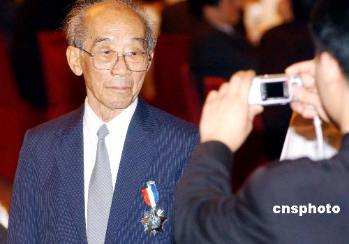 8月11日,纪念中国抗日战争暨世界反法西斯战争胜利六十周年午餐聚会在香港君悦酒店举行,来自内地和香港的数十位抗战老战士相聚一堂,出席纪念活动。图为获得和平勋章的老战士在场内拍照留念。作者:潭达明