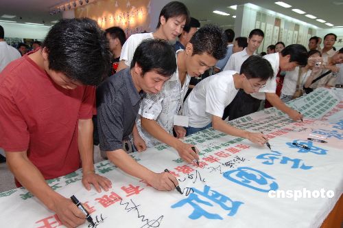 为纪念抗日战争胜利六十周年、推动祖国和平统一大业,以“两岸携手、同纪抗战、共建和谐、共谋发展”为主题的《纪念抗日战争胜利六十周年名人名家书画邀请展》,八月十四日在福州画院隆重开展,主办方还举行“两岸携手,共建和谐;毋忘国耻,振兴中华”百米长卷,万人签名活动。作者:刘可耕