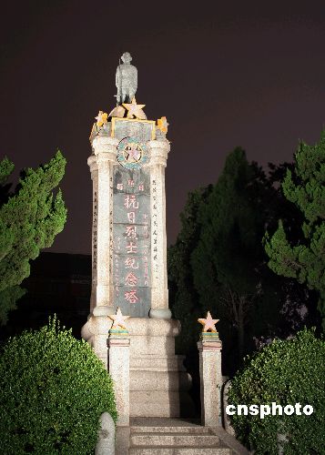 山东省日照县抗日烈士纪念塔,1945年秋建,1946年6月落成,塔高10.5米,八路军战士雕像2.5米,总高13米。塔的东西两面刻着自1932年日照暴动至抗战结束牺牲的840名烈士的英名。作者:高兴建