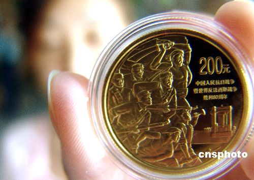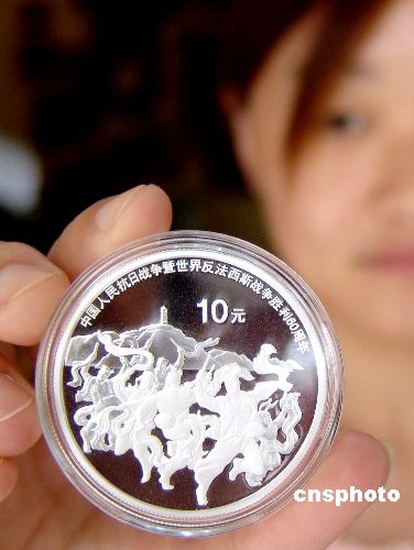 图:央行发行抗战胜利60周年金银纪念币