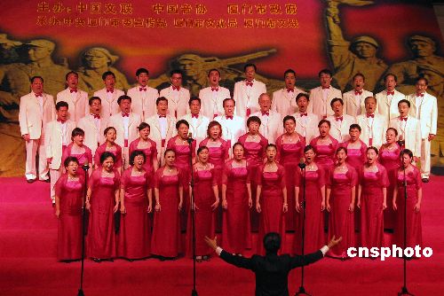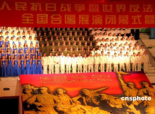 | 8月15日晚,在厦门大学明培体育馆举行“纪念抗日战争暨世界反法西斯战争胜利60周年全国合唱展演”闭幕式上,全体人员演唱国歌。“纪念中国人民抗日战争暨世界反法西斯战争胜利60周年全国合唱展演”于8月12日开幕,全国各地57支合唱团共约3400人参加13日举行的半决赛,其中30支合唱团脱颖而出,参加了14日的决赛。据了解,由厦门市人民政府和国际文化交流基金会共同主办的第四届世界合唱比赛定于2006年7月15日至25日在厦门市举办。届时,将有来自世界五大洲60个以上国家和地区的350多个合唱团,25000多名选手莅厦参加比赛。作者:蓝添艺