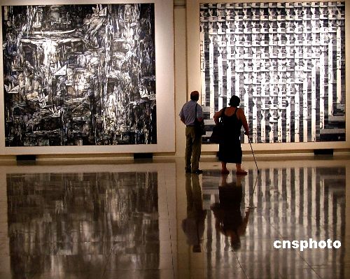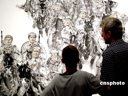 8月16日,《永恒的记忆——纪念中国人民抗日战争暨世界反法西斯战争胜利60周年京沪美术作品联展》在上海美术馆举办,不少外国友人参观展会,他们仔细地观看着每一件作品,了解每件作品的历史背景及意义。作者:井韦