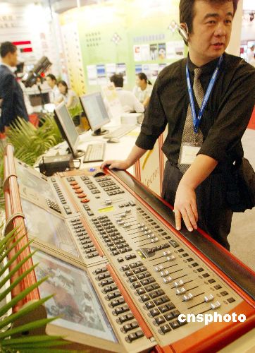 八月二十七日,正在北京举行的“第十四届北京国际广播电视电影设备展览会”吸引来自美国、英国、法国、日本以及中国六百余家客商参展,展会还举行国际技术交流,相互传递数字广播电视电影业的新信息,提高中国在数字化电影、电视技术的国际地位和影响。图为参展商展示最新影视、广播设备。作者:钱兴强