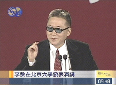 中新网9月21日电 李敖“神州文化之旅”的第一场演讲就选在北京大学,今天上午9时,李敖来到北大规格最高的会堂——办公楼二楼礼堂,受到了热烈欢迎。许多学生都早早等待在校办公楼外,打出 :“敖哥,欢迎回家!”“熊群视傲”等横幅。