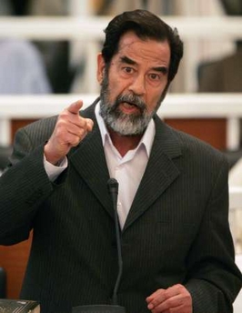 满脸胡子的萨达姆自称“伊拉克总统”,他对主审法官说:“我不承认授权予你的实体...,因为所有基于谎言的东西都是谎言。”(章田)