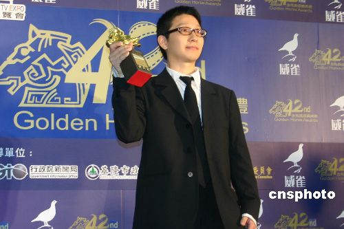 十一月十三日,台湾第四十二届金马奖颁奖典礼在基隆举行,《黑社会》编剧游乃海、叶天成获最佳编剧奖。图为游乃海获奖后接受媒体采访。作者:王国安