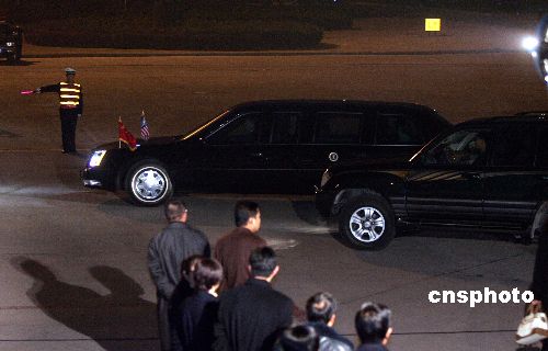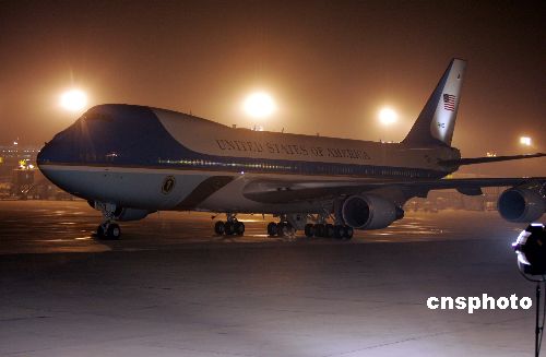 应中国国家主席胡锦涛的邀请,美国总统布什十一月十九日晚乘专机抵达北京首都国际机场,开始访华行程。这是布什总统入主白宫五年以来第三次访问中国。作者:毛建军