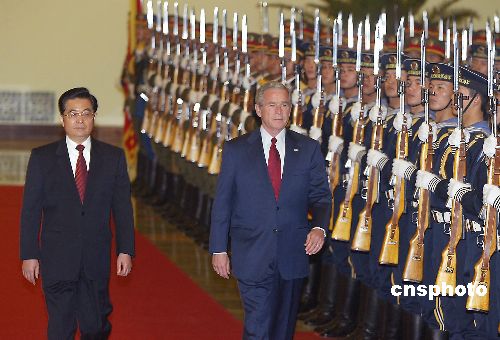 出于对远道而来的客人的尊重,胡锦涛请布什总统先讲话。