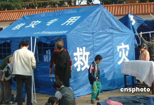 到二十八日凌晨,已有六千顶帐篷运抵灾区,另有大批帐篷等物资正陆续运往两地灾区。