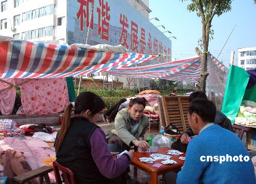 由于地震造成大量房屋损坏,九江市因受灾离开居所的灾民数量大约在四十万人。记者今天在瑞昌城区看到,虽然有大量居民生活在街头,但基本上喝水、吃饭、御寒等都有保障,目前未因灾发生一起刑事案件。九江市抗震救灾指挥部发言人曹俊良对记者表示,截至今天凌晨三时,九江市灾区基本解决市民在街头露宿问题。