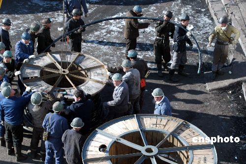 11月30日,黑龙江七台河矿难救援人员为出事矿井铺设电缆,以恢复井下照明,尽快找到下落不明的矿工。截至当日上午9时,七台河矿难确认死亡人数已达150人,仅剩1人下落不明。作者:武仲林