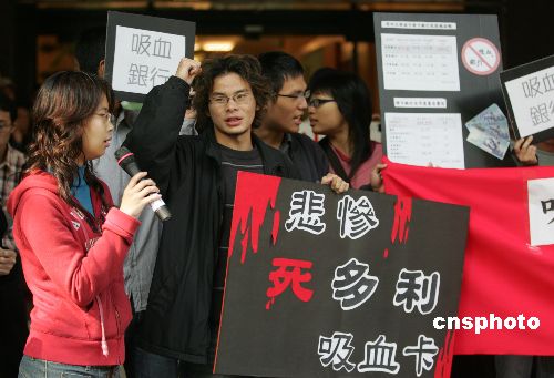 十一月三十日,台北的一些年轻人和在校大学生走上街头,声讨银行业以不当方式发放信用卡并暴力讨债的行为。据介绍,台湾各银行纷纷祭出各种“优惠条件”吸引年轻人办理现金卡、信用卡,导致不少年轻人债台高筑,且引发暴力讨债等社会问题。作者:宗金柱