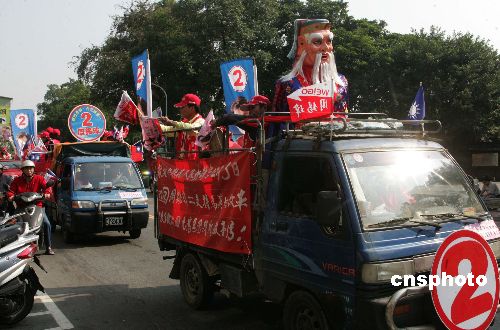 台湾县市长选举已到冲刺关头,蓝绿双方的各种造势活动进入白热化,“第一重镇”台北县街头时有竞选宣传车驶过。作者:宗金柱