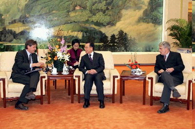 温家宝:解除对华军售禁令和承认中国完全市场经济地位是迟早的事情,在这两个问题上欧洲许多国家特别是法国的态度是积极和明确的。早日解除对华军售禁令和承认中国完全市场经济地位,不仅符合中欧双方的共同利益,也有利于中欧全面战略伙伴关系的发展。我们希望法国继续为此作出努力。我相信中欧全面战略伙伴关系一定能够经得起时间和历史的考验。