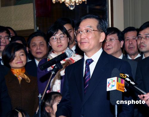 中新社巴黎十二月五日电 (记者 钟诚)正在巴黎访问的中国国务院总理温家宝,当地时间四日晚间在中国驻法国大使馆会见了旅居法国的华侨华人和留学生代表,并代表祖国和人们向他们表示了亲切的问候。他还着重转达了政府、祖国和人民对在巴黎骚乱中受到损失的侨胞的关切之心。