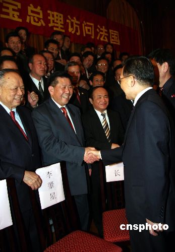 温总理勉励华侨华人,发扬爱国主义的优良传统,在做好自己工作的同时,也能够为祖国的繁荣和富强尽一份力量。他还着重转达了政府、祖国和人民对在巴黎骚乱中受到损失的侨胞的关心。并表示相信法国政府能够处理好此事,也相信大使馆能帮助大家解决一些困难和问题,并希望华侨、华人能够互勉互助。