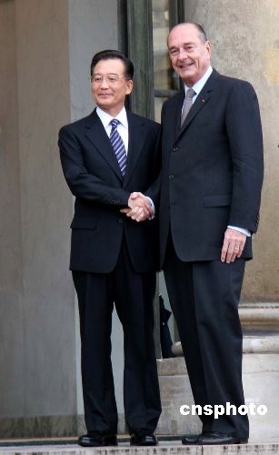 正在法国进行正式访问的中国国务院总理温家宝5日在巴黎会见了法国总统希拉克。