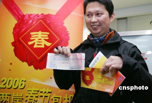 中新社上海十二月十九日电 题:春节包机沪上出票 台胞赶早争抢“头彩”