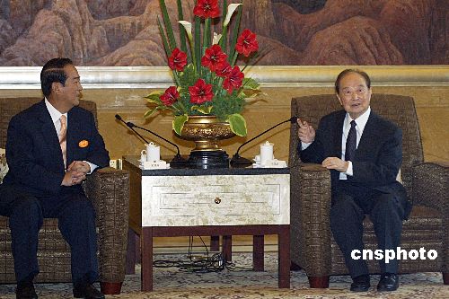 五月八日,海峡两岸关系协会会长汪道涵在上海会见了由亲民党主席宋楚瑜率领的亲民党大陆访问团。作者:廖文静
