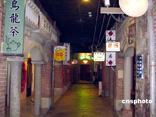 古街两旁,一座座旧时期台湾建筑的木屋店铺毗邻,每一间店铺都挂有牌子,有医院、文具商店、面包店、冰果室、药房、裁缝店及茶行等,它在告诉人们,这才是四十年前台湾的真实街景。然而,这些店却都在营业。杨小姐告诉记者,馆中的这些仿旧设计,不是单纯为了让人观赏,而是结合旅游营业。所以,这些餐饮店中每天都引来了大量食客,旅游纪念品店里,每天都有前来参观的客人进店购物。