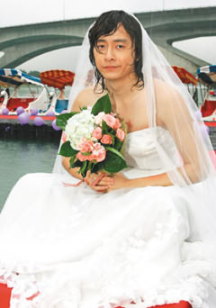 小综当然没披过婚纱,“第一次”的经验惨到最高点,婚纱背面夹满夹子、回纹针,毕竟小综胸肌再大,也没法跟女人双峰一样,小综最后只得靠塞胸垫入镜,他说:“当女生真可怜,要有胸部才撑得住礼服。”