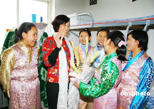 | 2月28日是藏历火狗新年,在辽宁省辽阳市第一中学西藏班学习的600多名藏族学生在第二故乡迎来新年。藏历新年是藏族最隆重的节日,学校安排学生按藏族习俗过年,组织了丰富多彩的活动。校园里披上节日的盛装,师生一起贴年画、挂彩灯、炸“卡赛”(果子)。大年初一早晨,学生们穿上新衣服,共饮第一杯酥油茶。学校领导和老师来向大家祝贺新年,学生向领导和老师们敬“竹素切玛”(五谷斗)和青稞酒,献上哈达,师生互相祝福“扎西德勒”(吉祥如意)、洛萨尔桑(新年好),校园里到处是欢歌笑语。醇香的酥油茶、优美的藏族歌曲、洁白的哈达,仿佛把人们带到遥远的雪域高原。作者:曹精义