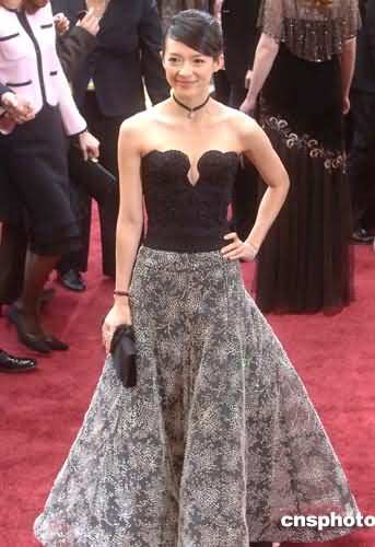 还记得金球奖的时候,作为女主角提名之一,一件黄绿色礼服可以说是全场最佳。论个性章子怡属于那种喜欢独占鳌头的人,可到了奥斯卡她就改走保守路线,只在胸部的设计做了一些小手脚,显出性感一面。不过有消息说,如此穿着是为了配合珠宝商的某些要求。