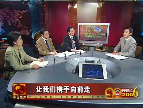 谢谢永蔚带来的两会上的感受,稍后请大家继续收看我们的《中国焦点2006》。