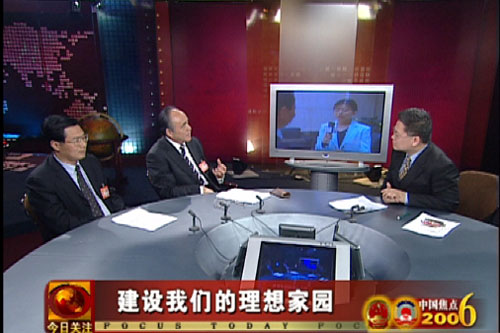 | 聚焦三月的北京,中国人用智慧决策未来,用爱心规划家园,用责任拥抱世界。2006的这个春天,中国播下了新的种子,13天的真诚互动,13个牵动百姓的期待。中央电视台中文国际频道《今日关注》携手中国新闻社等多家媒体倾听百姓声音,解读《中国焦点》。