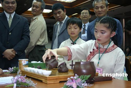 平日人称充满“炮火硝烟味”的台湾“立法院”群贤楼一0一会议室,今天却飘散着阵阵茶香。来自嘉义县梅山乡太和村小学的十二位持有“小小泡茶师”资格认证的学童,在此执壶展现训练有素的茶艺礼仪。