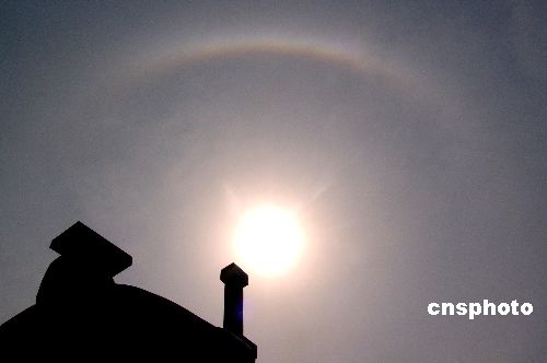 2006年3月31日,农历丙戌年三月初三,河南新郑举办丙戌年黄帝故里拜祖大典。10时40分左右,拜祖大典正在进行中,现场天空突然出现日晕奇观,太阳旁出现清晰日晕,如同美丽彩虹。作者:马健