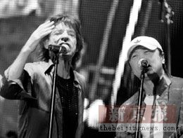 据新京报报道,昨晚九点零七分,滚石乐队终于在上海大舞台展开了中国内地首场演出。虽然让众多歌迷等了整整一个小时,但老炮们奏出的第一个音符便让全场观众原谅了他们。随后的演出更是没有铺垫,没有过渡,直接带领歌迷进入长达一小时四十分钟的高潮。崔健在演出开始后不久便登台同滚石们合唱了他们的经典曲目《wildhorseis》,显得十分激动的崔健说:“今年是中国摇滚乐20周年,非常感谢滚石乐队,我已经跟他们约定了,不远的将来他们还会再回来。我们再在北京搞一场rock and roll show!“
