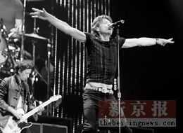 让现场气氛更上一层的是崔健的登场。当滚石奏响自己的经典曲目《wildhorseis》的时候,现场大部分观众惊喜的发现头戴招牌红星棒球帽的崔健已经身挎吉他站在了台上。一阵“崔健,崔健”的欢呼终于让人有了身在中国的感觉。或许是期待这样的演出已经多时而感到有些紧张,崔健的表现中规中矩,并没有太多出彩的地方。一曲唱罢,他兴奋地说道:“今年是中国摇滚乐20周年,非常感谢滚石乐队,我已经跟他们约定了,不远的将来他们还会再回来。我们再在北京搞一场rock and roll show!”(记者贾维)