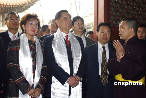 四月十六日,中国国民党荣誉主席连战携夫人参观北京雍和宫。作者:盛佳鹏