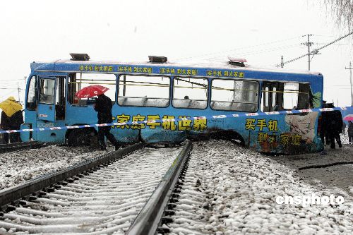 2006年4月17日,满载乘客的118路公交车穿过沈抚(沈阳-抚顺)线19公里处水家屯道口时,被一辆迎面而来的火车撞翻,前推100多米远。2人当场死亡,20多人受伤。 作者:石立飞