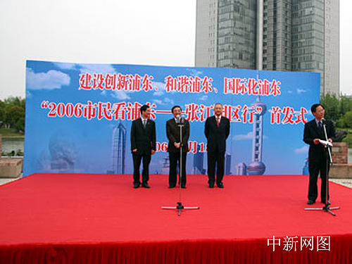 图:市民看浦东开幕仪式