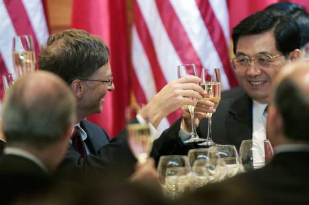 图文:胡锦涛在盖茨家参加晚宴
