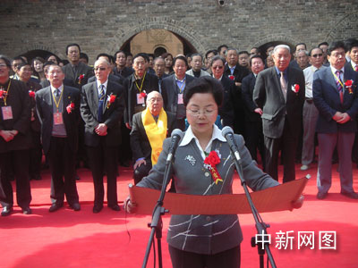 4月20日上午9时20分左右,34响钟声拉开白水县丙戌年谷雨公祭仓颉典礼序幕。 在幽雅的民乐伴奏下,此次公祭活动主祭人——全国工商联名誉主席、原全国人大副委员长王光英缓缓前行,率先向文祖仓颉献上一个素雅的花篮。