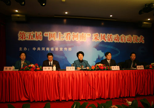 中新网郑州4月22日电 河南省第五届“网上看河南”采风活动今天上午在郑州正式启动。,来自人民网、新华网、中国网、中新网等等全国各地30余家网站的负责同志和采编人员,共计60余人将赴河南新乡、濮阳、三门峡、周口和信阳五市多个县村考察河南社会主义新农村建设。