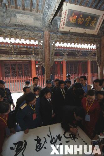 中新网白水(陕西)4月22日电 几千年前,文字始祖仓颉发明创造了文字,使华夏儿女进入文明时代。为弘扬仓颉文化,4月20日四海宾客纷沓而至,相聚陕西白水县的仓颉庙,题词作画以表达对仓颉的敬仰。
