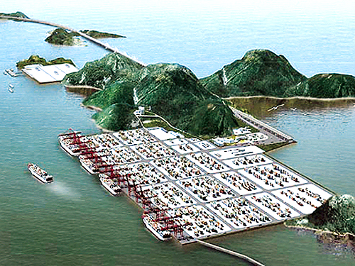 洋山深水港区位于杭州湾口、长江口外的浙江省嵊泗崎岖列岛,由大、小洋山等数十个岛屿组成,是中国首个在海岛建设的港口。洋山港西北距上海市南汇芦潮港约32公里,南至宁波北仑港约90公里,向东经黄泽洋水道直通外海,距国际航线仅45海里,是距上海最近的深水良港。到2020年,洋山港布置集装箱深水泊位50多个,设计年吞吐能力1500万标准箱(TEU)以上;通过跨海大桥与上海交通运输网络连接,充分发挥上海港经济腹地广阔、箱源充足的优势。。。。